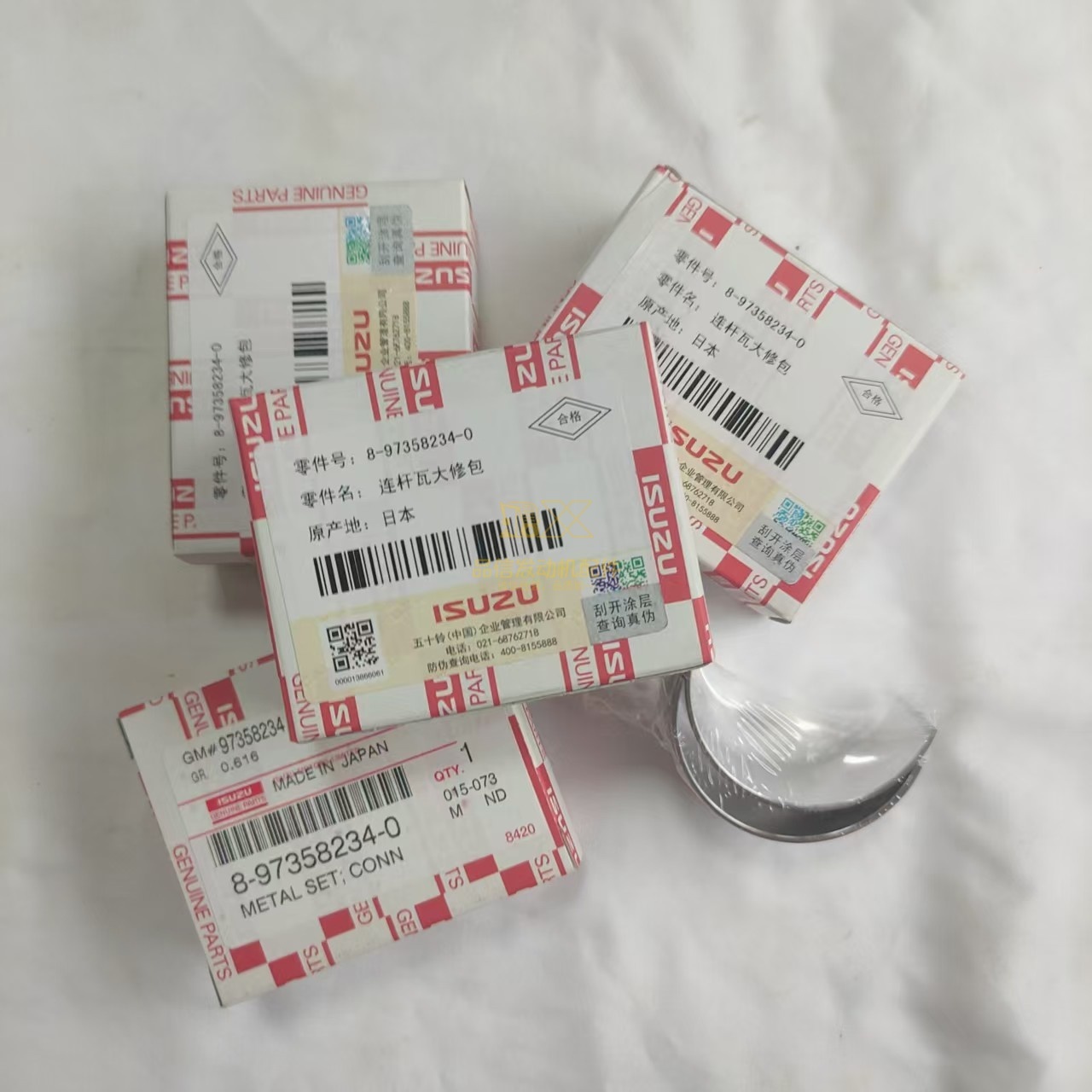 This is a connecting rod bearing overhaul kit for part number 8-97358234-0, compatible with specific excavator engine models. It is a metal bearing component set of original specification, used for maintaining the friction pair between the engine connecting rod and crankshaft, and is a key part for engine overhaul or maintenance.